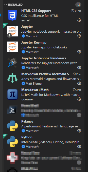 - Install extension yang akan dibutuhkan. Berikut extension yang saya gunakan (yang utama hanya Python dan Jupyter sebenarnya).